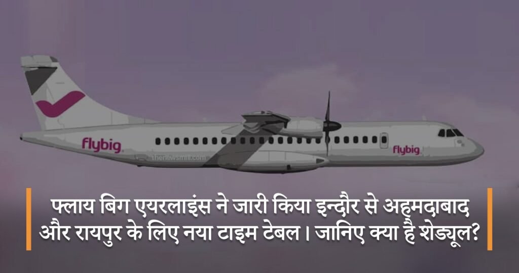 फ्लाय बिग ने इंदौर से अहमदाबाद फ्लाइट शुरू करने के बाद नया शेड्यूल जारी किया है। फिलहाल यह शेड्यूल 6 जनवरी से 27 मार्च तक के लिए है। एयरलाइंस 13 जनवरी से रायपुर और 1 फरवरी से भोपाल-अहमदाबाद के बीच भी उड़ान शुरू करेगी। अहमदाबाद 16 फरवरी से और रायपुर फ्लाइट 17 फरवरी से नियमित उड़ान भरेगी।