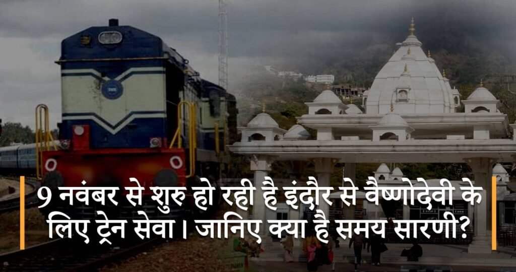 इंदौर से माता वैष्णोदेवी के लिए 9 नवंबर से और माता वैष्णोदेवी से 11 नवंबर से शुरू हो रही है। यह ट्रेन सप्ताह में तीन दिन चलेगी। रेलवे बोर्ड ने शुक्रवार को ट्रेन के संचालन की सिफारिश करने की अधिसूचना जारी की और इसे पूरी तरह से शुरू करने की तारीख और दिनों की कार्रवाई शुरू कर दी।अधिसूचना के अनुसार, ट्रेन न. 02919 महू-माता विष्णोदेवी 9 नवंबर से अगले आदेश तक एक विशेष ट्रेन के रूप में परिचालन शुरू करेगी।